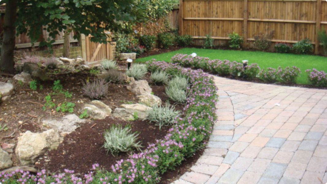 Landscaped gardens with mature plants